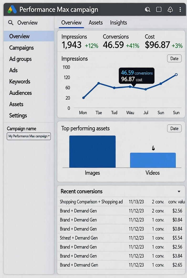 Conversion Value) absolut präzise ist. Die KI ist nur so gut wie die Daten, mit denen Du sie fütterst.Kreative Exzellenz (Assets): Mit Performance Max entscheidet der Algorithmus, welche Kombination aus Text, Bildern und Videos am besten konvertiert. Deine Aufgabe ist es, eine große Bandbreite an hochwertigen Assets zu liefern. Creatives sind das neue Keyword!